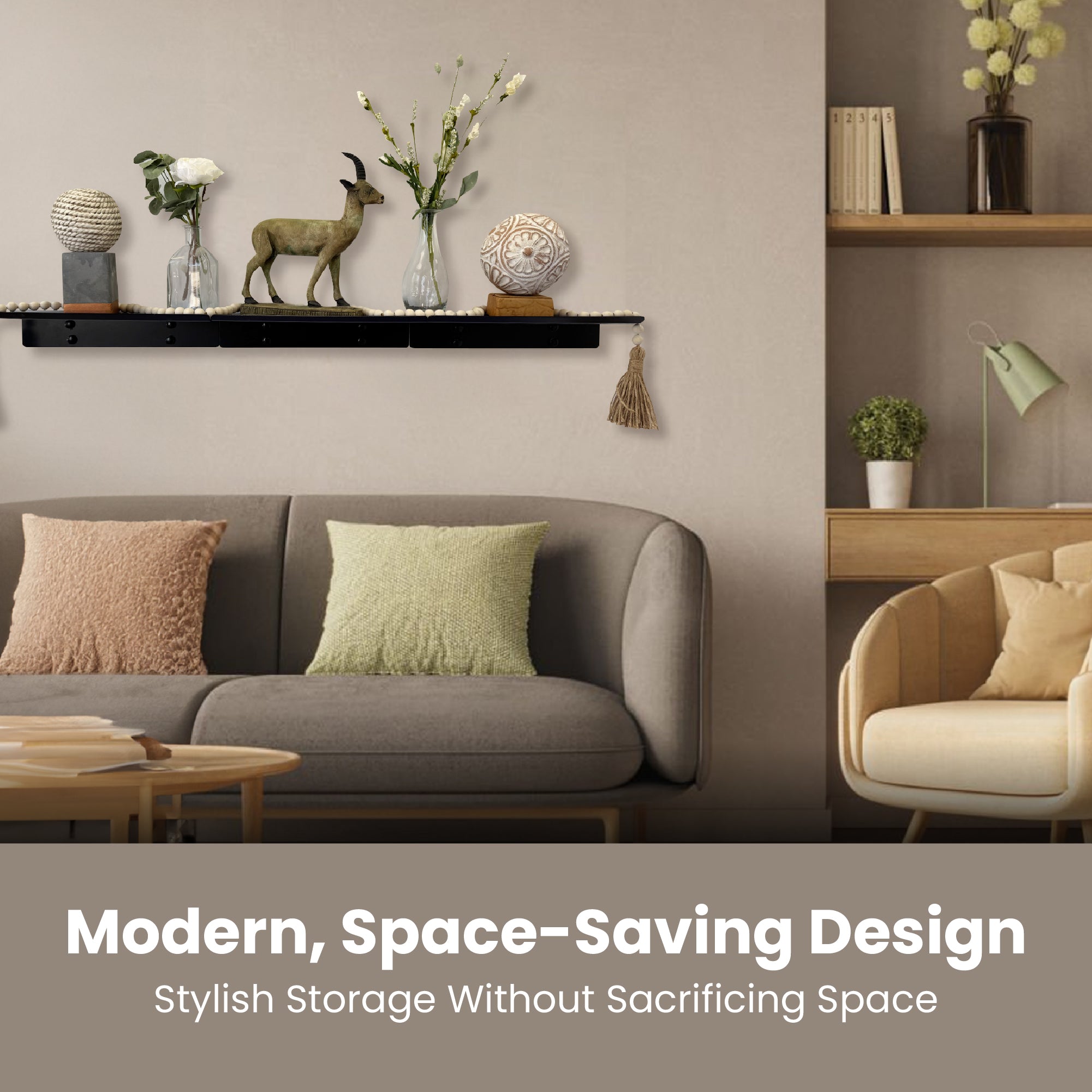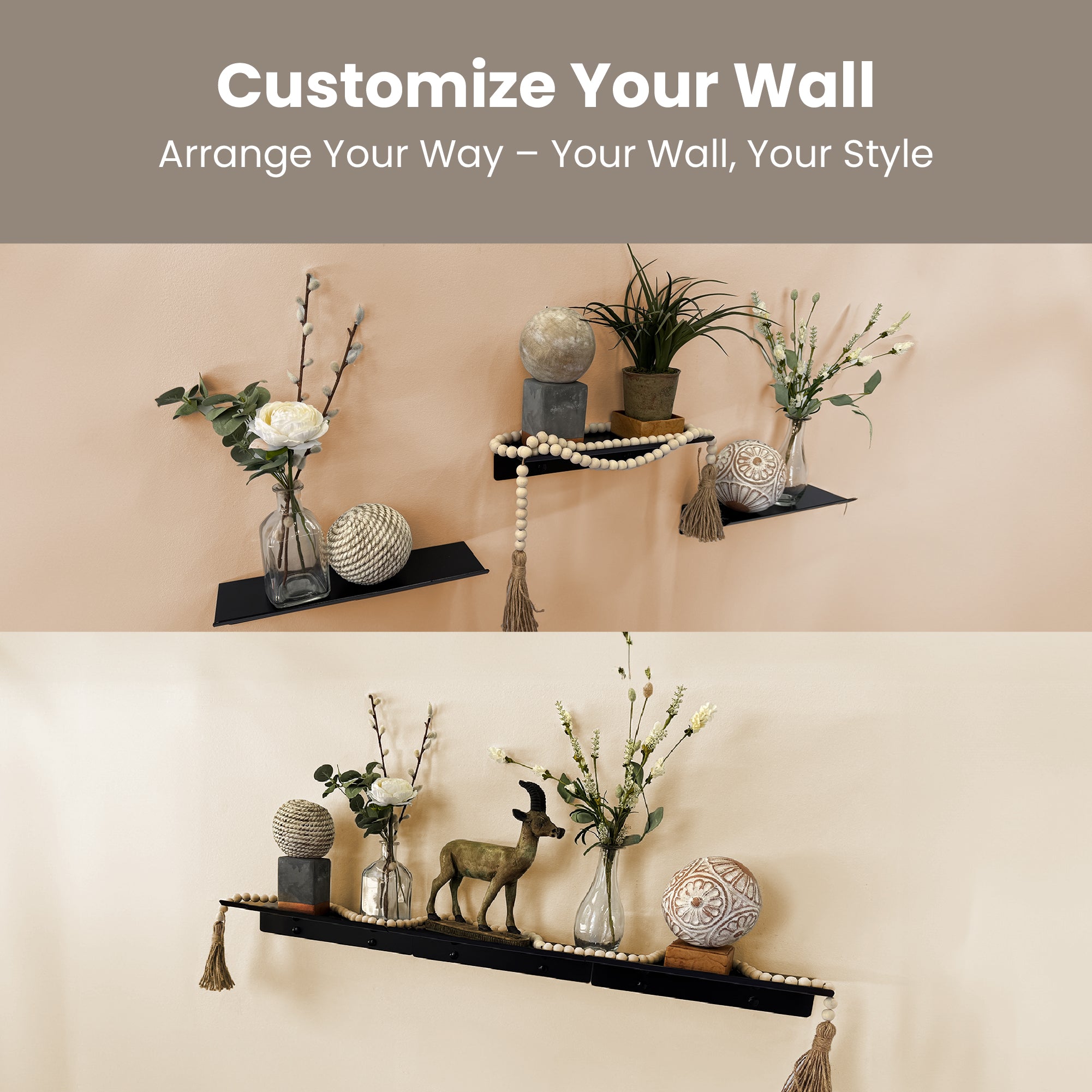 Whether it’s your favorite figurines, candles, or keepsakes, cramming them onto flat surfaces can make a room feel smaller and disorganized. With our set of floating wall shelves, you can finally free up your surfaces and turn plain walls into eye-catching display zones.