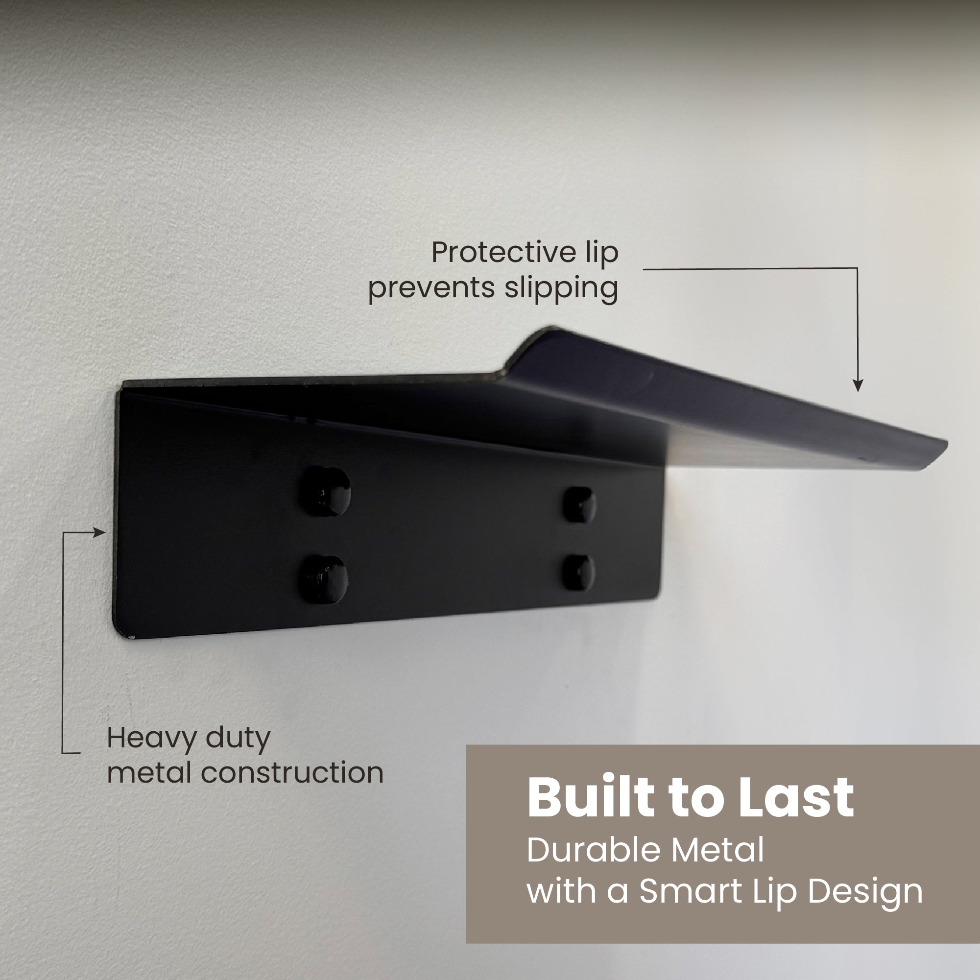 he durable metal construction ensures lasting support for your items, while the built-in lip helps keep everything in place—no slipping or sliding to worry about. Whether you're decorating a cozy corner or organizing your entryway, these shelves offer flexibility and flair to match your unique style. Installation is a breeze with included mounting screws, wall plugs, and washers—no need to hunt down extra hardware.