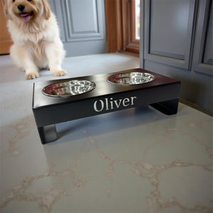 Whether you’re feeding one pup or two, this raised dog bowl holder adds a modern, personalized touch to your home while promoting better posture and digestion for your furry friend.