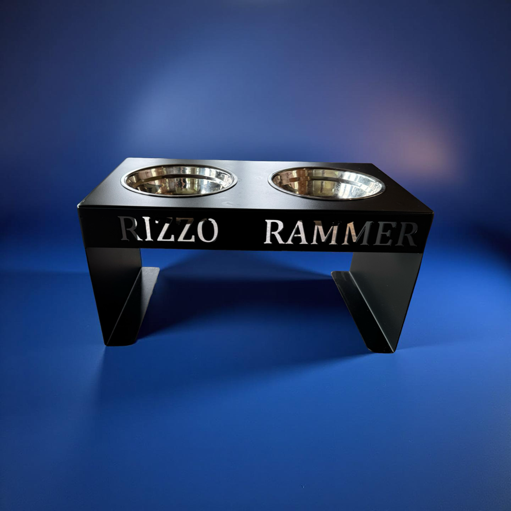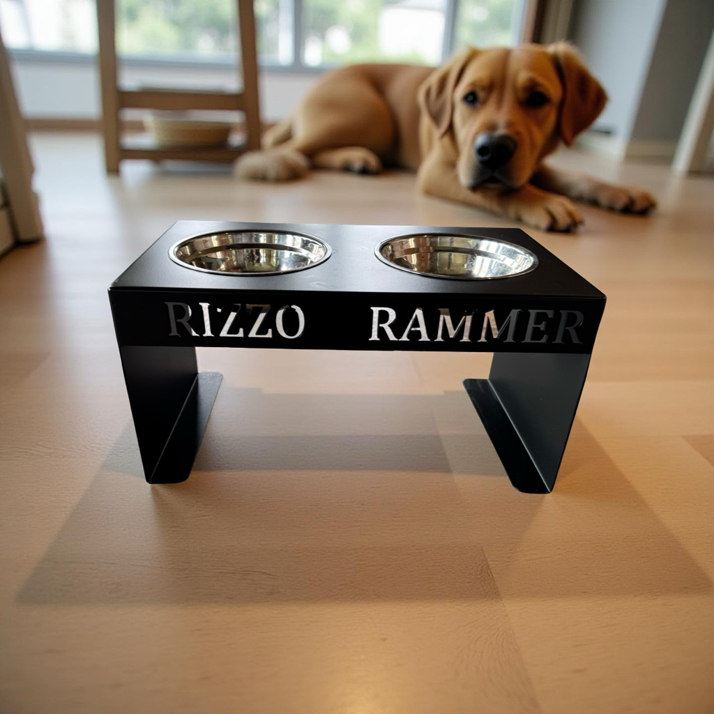 Elevate your pet’s feeding space with this custom black metal dog bowl stand, designed for both style and durability. Crafted from heavy-duty powder-coated steel, this elevated feeder is built to last — resisting rust, scratches, and daily wear from even the messiest eaters.
