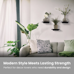 Wall Display Shelves for Bedroom, Bathroom, Living Room, Kitchen, Office - Metal Construction with Powder-Coated Finish - Modern Wall Shelf for Decor - 3-Pack